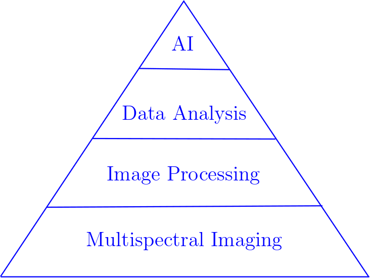 We are developing multispectral image analysis systems that can image objects at different wavelengths. Acquired images are enhanced using various image processing algorithms and meaningful information is extracted using enhanced image analysis and computer vision techniques. Extracted information is used to produce machine learning models that enables accurate and precise prediction. Finally, artificial intelligence models are trained for high performance classification or synthesize realistic images. Detailed explanation of these steps are described below. To inquire more information, please email info@ergovisio.com.